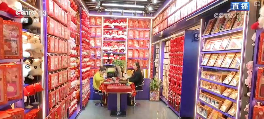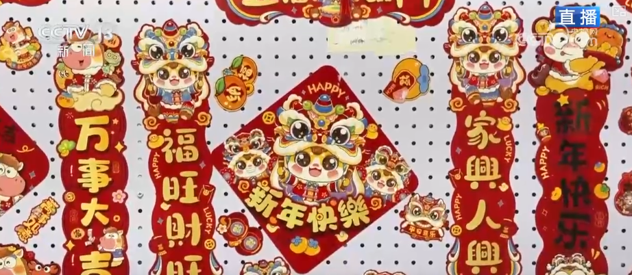 她转做国风饰品这行时间还不长,几乎都能找到产自义乌的年画、挂历和春联。