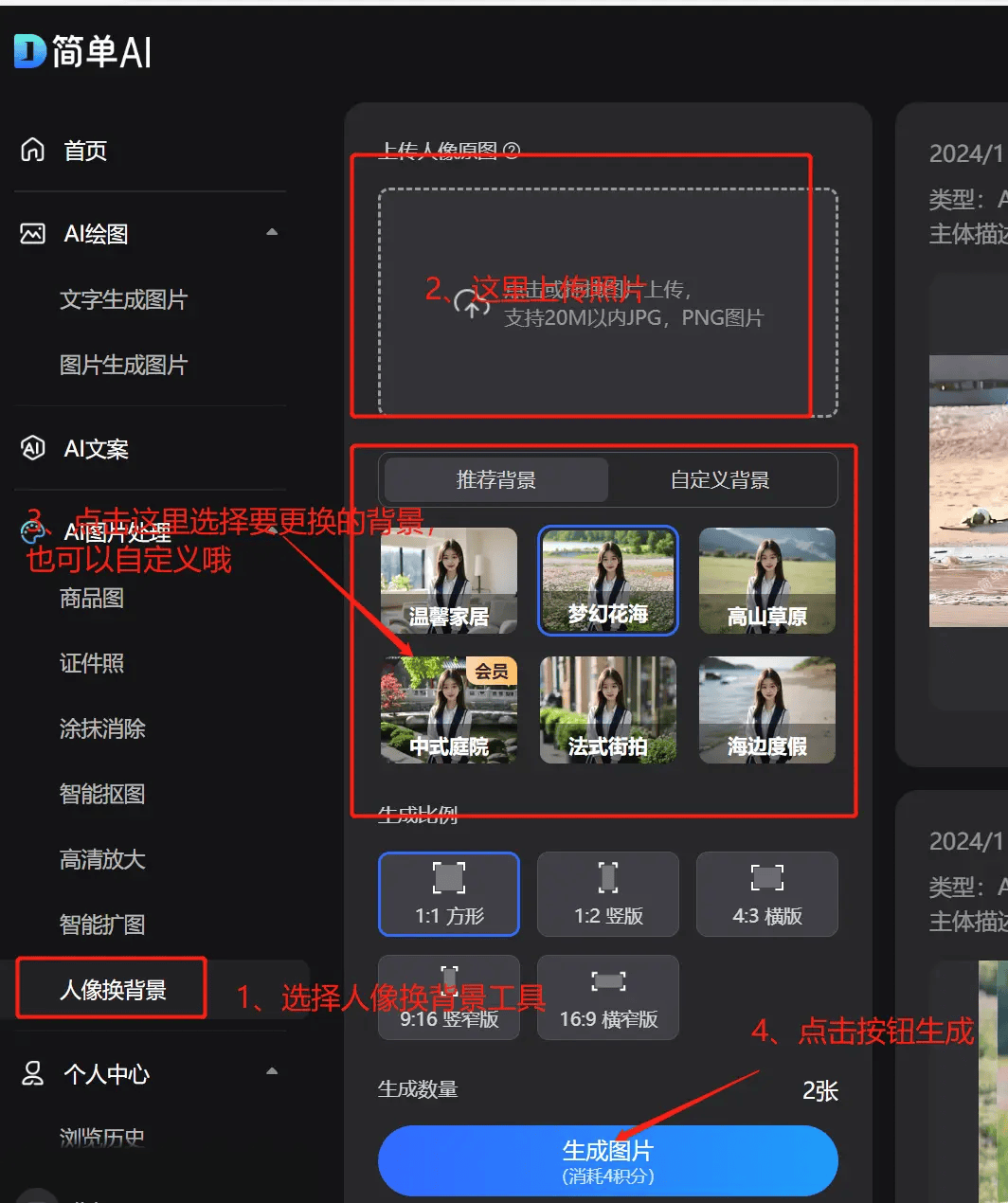 若是你也受够修图到目炫、总被抠图逼疯——赶紧去尝尝!”选择【人像换布景】→上传照片→选择想要改换的布景(也能够选自定义哦)→选择比例+数量-点击【生成图片】→下载