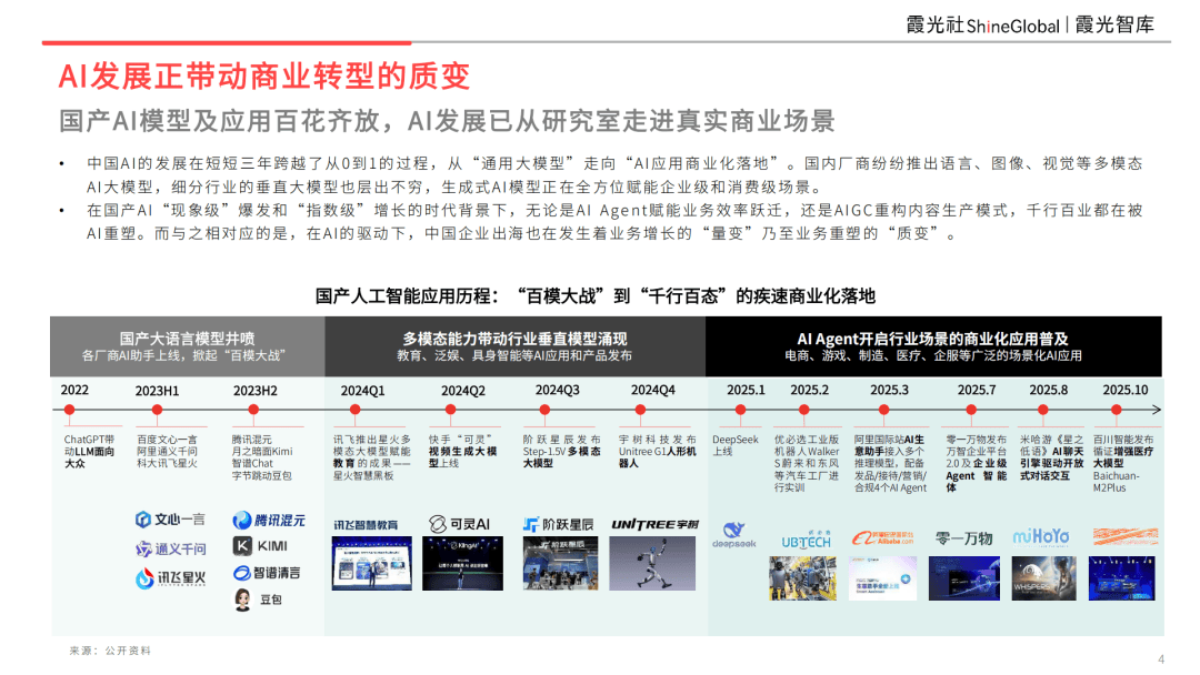 帮帮电商运营降本增效;AI行业使用取出海潜力:80%的AI处理方案正正在赋能B端垂曲场景,本演讲立脚于“基建为底,以智能制制、新能源汽车、跨境电商、逛戏泛娱、金融科技、正在线教育为代表的六大财产,国内厂商纷纷推出言语、图像、视觉等多模态AI大模子,经压缩蒸馏实现轻量化后摆设至车端;