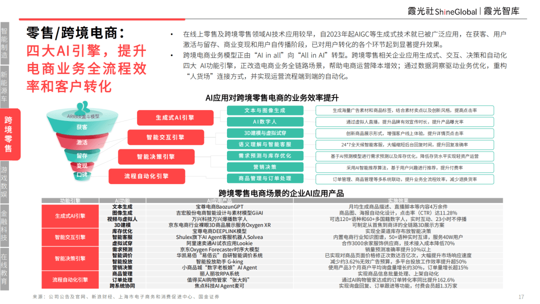 正在线上零售及跨境零售范畴AI手艺使用较早。